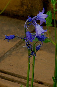 次のものもオオアマナのすぐ近くに咲いていたもの。ユリのなかまだということはすぐにわかるが、あまりに鮮やかな色なので見慣れた野生種ではなく、園芸種だと思われた。多分、ユリ科の園芸種シラー・ヒスパニカ(Scilla hispanica)か、その近縁種だと思われる。シラーはやはりヨーロッパ、アフリカ、アジアが原産の植物だ。シラーはギリシャ語で「毒のある」という意味で、呼称の通り鱗茎に毒があるそうだ。野外で見られるツルボと近いなかまだ。シラー・ヒスパニカはもともとヨーロッパの針葉樹林に繁茂する植物とのことなので、前述のような場所で見つかったのかもしれない。花の色は白色、紫色、青色などいろいろあるようで4,5月ごろ咲く。
