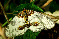 一方、ユウマダラエダシャクはシャクガ科のガだ。色は何色かが入り乱れており、光沢もあるが、鳥の糞をイメージさせる。