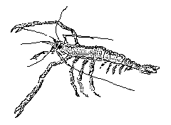 沼池にすむ体長3cmほどの小型のエビ。似たものとしてヌマエビがあるが、頭胸部の形状で区別する。