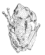 ごく普通にみられる小型のカエル。通常、緑色をしているが体色は変化する。鼻孔から眼、体側にかけ黒い縞がある。指先は平たく物に吸い付きやすい構造をしている。