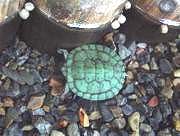 ミドリガメといったほうが通りがよいかもしれない。縁日や祭り、ペットショップでよく売られている緑色のカメ。緑が鮮やかなのは小さいときだけで、大きくなると緑色はわかりにくくなり、ほとんど茶褐色になる。クサガメなみの大きさまで成長する。側頭部の赤いラインからアカミミガメ(レッドイヤータートル)の名がある。これも帰化種であるが自然の河川で著しく増加している。このほかに最近ではカミツキガメ、ワニガメなど帰化種の猛威が話題となる。