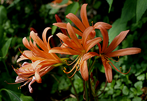 上の左の写真は上流部、遺跡のある秩父市大滝神庭近くの荒川だ。キツネノカミソリ(下左写真)の群生地で、8月はちょうど開花してい