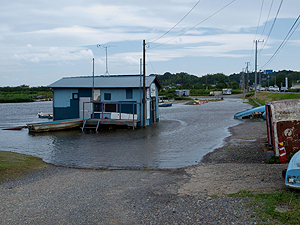 め、台風のあとなど急激に水量が増えると周辺は冠水することがある(写真左:2012年台風4号後)。北印旛沼と西印旛沼では少し趣が異