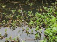 ヒユのなかまにはアオゲイトウやマルバヒユなどがあるが、このナガエツルノゲイトウが一番水を好むようで水中からはえているという感じだ。マルバヒユもブラジル原産だが、こちらは花壇のふちに植えられることもあるようで人為的に日本に入ったのかもしれない。ナガエツルノゲイトウはたぶん渡り鳥によって運ばれたのではないかということである。