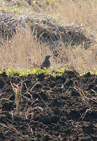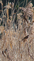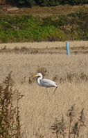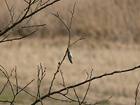 この日は、寒々とした景色が広がるばかりで、生き物の存在があまり感じられない日であった。それでも、休耕田に伸びたヨシ、セイタカアワダチソウはスズメの格好の休息場所となっていた。このヨシ、セイタカアワダチソウの群落が所々にあるおかげで、キジもこの場所に現れることがある。ダイサギが1羽、田んぼで羽を休めていた。こちらが歩くと飛び立ち、常に一定以上の距離を保つ。草地ではツグミがまわりを警戒しながら、歩き回っていた。