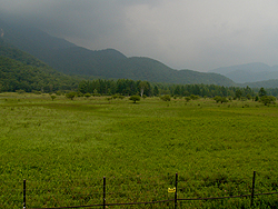 小田代原に入ると今までの、落葉樹とササが目立つ薄暗い景色がいっきに開ける。いろいろな花たちの姿も見られるようになってくる。