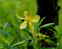 大柄な黄色い花もところどころで目立つ。よくみると花弁がよじれているようにみえる。オトギリソウ科のトモエソウだ。