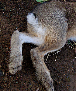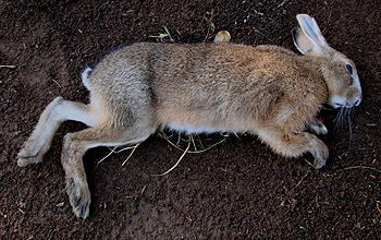 2月の朝、道路沿いにノウサギが死んでいた。きれいな状態ではあるが一部に出血もあるため交通事故かそのためのショック死だと思われる。北総にはまだまだノウサギは多いようで独特の丸い糞はよく見かける。公園や学校などの花壇でも糞は多く残されている。夜行性なので姿を見ることはあまりない。ノウサギはタヌキなどに比べると交通事故の頻度は少ないようだ。交通事故に遭うノウサギは春に多いとのこと。出産は春から秋まで続くが、その繁殖期の開始(交尾期は1月からだそうだ)の関係、または餌の季節による変化のための移動が原因なのであろうか。