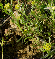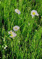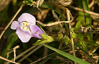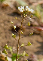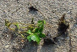 左からヘビイチゴ、ムラサキサギゴケ、トキワハゼ、カラスノエンドウ、カキネガラシ。ヘビイチゴは大きな襟のような苞が目立つバラ科の植物。この苞で他の近似の種と区別しやすい。ムラサキサギゴケはゴマノハグサ科の植物。地面を覆うように生える。花の色は濃淡の変化が多いようだ。同じゴマノハグサ科のトキワハゼも小さいが美しい花だ。カラスノエンドウはマメ科の植物でこれも群がって生える。カキネガラシはアブラナ科の植物で茎がどこか有刺鉄線のように見える。ヨーロッパ原産で日当たりがよい場所、道端に集団をつくる。