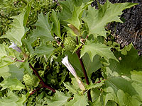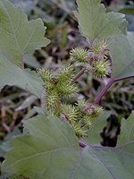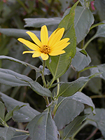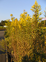 左からヒナタイノコズチ、オオオナモミ、キクイモ、セイタカアワダチソウ、ヤブガラシ。ヒナタイノコズチは実が服や動物の体表につくヒユ科の植物。以前はこのヒナタイノコズチとヒカゲイノコズチをまとめてイノコズチと呼んでいた。オオオナモミも実が服につくことがあるキク科の植物。キクイモはキク科の植物で9月、10月に花をつける。似たイヌキクイモは花期が7,8月とキクイモとずれる。大きく育つセイタカアワダチソウはキク科だ。ヤブガラシは一面を覆うように伸びるブドウ科の植物。