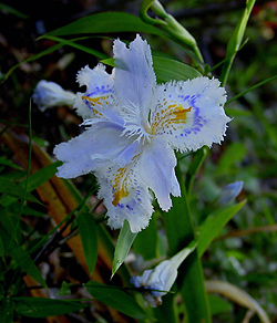 シャガは飾る言葉が必要ないほど、そのままできれいな花を咲かせる植物だ。しかも、この花ほど特徴があると他の花との区別に困ることはない。ヒメシャガも花は青っぽく、あきらかにシャガとはことなるので間違うことはにあだろう。やや、暗い林の中での群落は格別な雰囲気がある。
