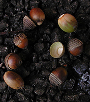 林縁を歩いているといろいろな低木から高木まで様々な樹木が目に入る。樹木は前にも触れたが私にとっては、なかなか、なじみにくいもののひとつだ。まず、区別がしにくい。それでも、あえて着目し、少しずつでも慣れ親しんでいきたい。そのような、樹木の中で、割合、同定しやすく、区別しやすいのがブナ科の樹木だ。葉が特徴的で、実も特徴があるので区別しやすい。写真左からアカガシ、スダジイ、シラカシとその実。ブナ科の実は広義にドングリと呼ばれる堅果というタイプ。そのドングリも形もさまざまで、殻斗と呼ばれるはかまの部分も縞状、鱗状、全体を包むようなものとさまざまだ。実も花期から1年目にできるものと2年目に成熟するものがある。