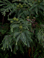 これはスギ。植林のためか、いたるところにある。林縁でもちょこちょこと顔を出す。短めのとげとげしい葉が特徴的だ。スギ科の植物。写真に写っている丸い部分は実だ。
