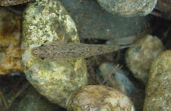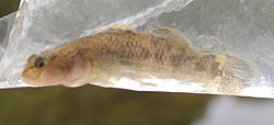 このあたりで簡単に捕まえることができるヨシノボリは「クロヨシノボリ」と思われる個体が多い。しかし、よく見ると「ルリヨシノボリ」にも非常に似ている。体の模様などは「ルリヨシノボリ」のように見える。ただ、ルリヨシノボリ特有の頬にある瑠璃色の斑点が見られない。各種ヨシノボリの分布や特徴(眼を通過する、眼の下の頬を通過する線状の模様があること、体側の斑模様)からこの辺りにはトウヨシノボリの偽橙色型が多いようである。
