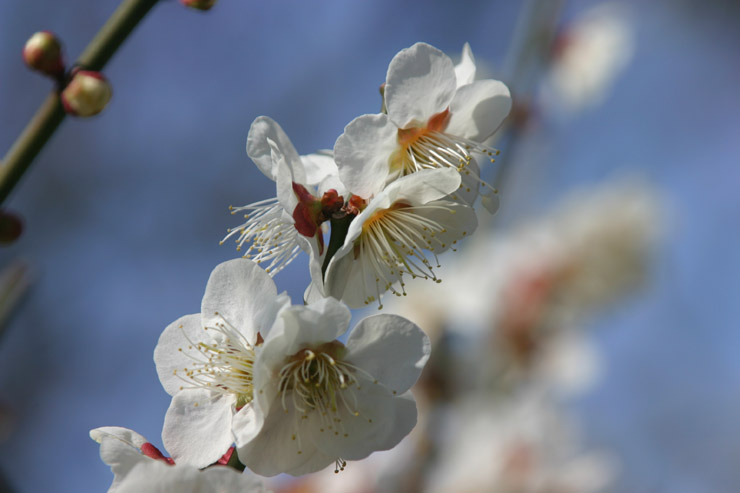 西印旛沼を見下ろす小高い岡の師戸城址。 今は印旛沼公園として近郷近在の人々の憩いの場所となっている。 梅や桜の季節になると我が家も必ずここを訪れる。 快晴のこの日、ここの梅の花とサンシュユがどんな具合か見に行くことにした。 梅はどこも見頃になっているので当然綺麗に咲いてるだろうと予想がついたが、サンシュユはどうかなあ・・と気にしながら行ってみると、なんともう一斉に咲きだしていて大感激。