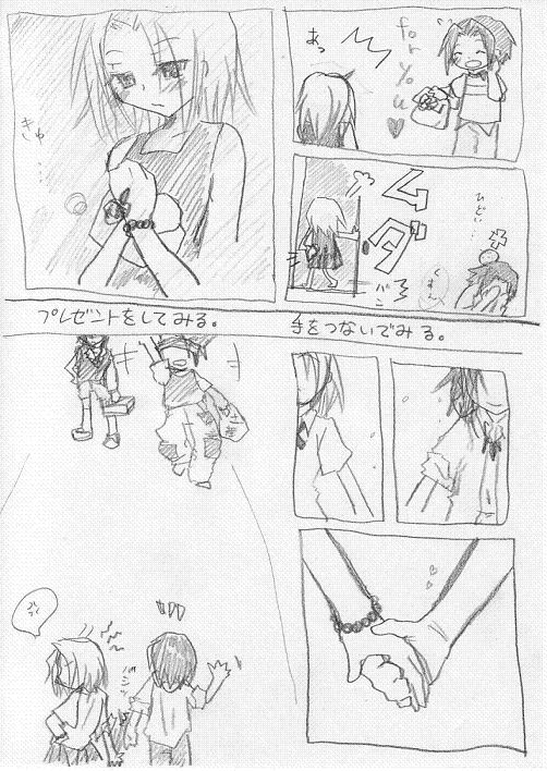 ほんわか日和の帰り道。 かけがいの無い二人の時間。 ・・・誰かが来るまでのひととき。 ・・・ごめんなさい_| ̄|○ 手、手・・・。 逆・・・。(スルーして下さい・・・。) ホロホロと蓮は一応ちゃんと手土産持参してます。