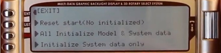 Two options, no idea what they do. [ENT] サービス・メニューに戻ります [CLR] ジャンパー・セッティングによるステック・モードで初期化します [4th] モデル・データーを初期化して再起動します Transfer