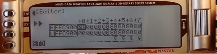 Many hex values are displayed in a table, and can be scrolled through. Editor