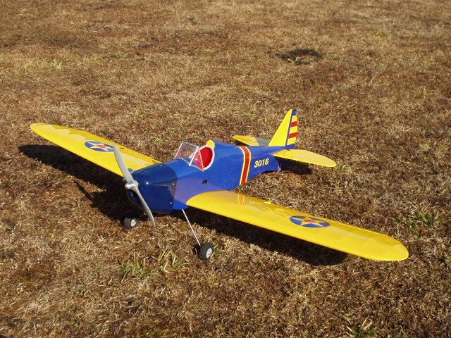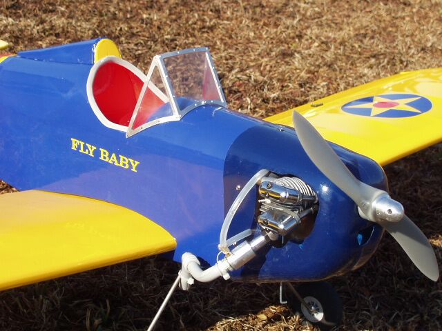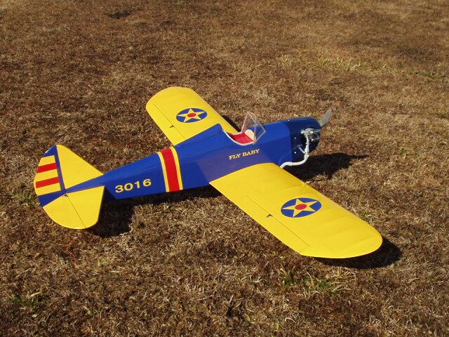 FLY BABY エンジン:SAITO FA30 重量:Kg メーカー:図面から製作 全長: 全幅: 翼面積 : 風防はアルミフレームにプラバンをリベット付けしています ノーズカウルは早川さんによる製作です 製作:佐藤