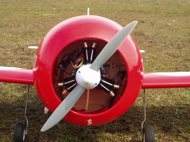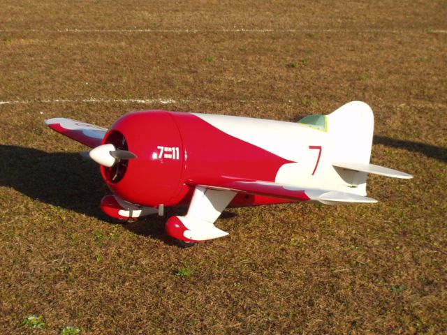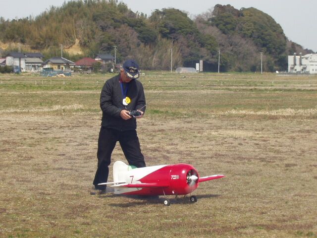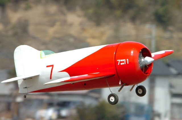 Gee Bee R2 エンジン:saito FA170R3 機体重量 6.OKg メーカー:自作 翼幅:192cm 全長:135mm(スピナーを含む) 完全自作の機体です、エンジンはキャブレターを変更して各気筒にキャブレターを 取り付け3個にしました。 2008年3月初飛行も無事に終え、フライトを重ねています 製作:祓川
