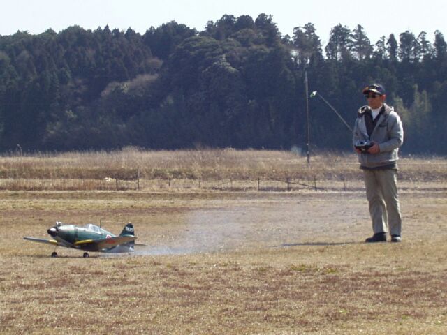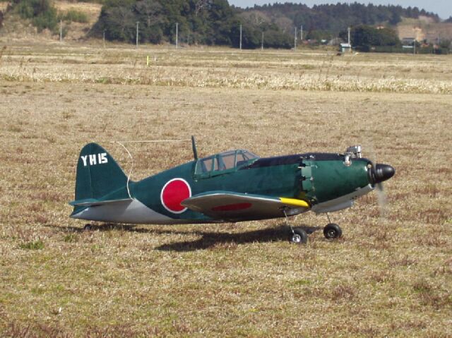 局地戦闘機 雷電 製作:早川義夫 エンジン:SAITO 80 機体重量 メーカー: 日本海軍機の中で一番操縦がむづかしく、離着陸の速力が一番速く、 事故の多い機体と言われていました。実機そのもののフライトでした。