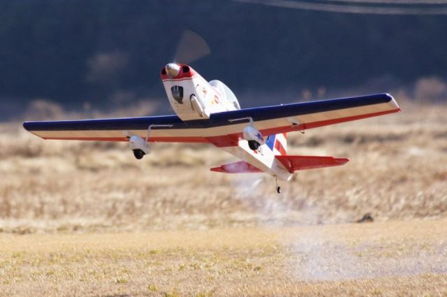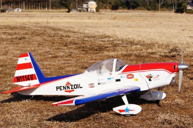 エンジン:OS91 機体重量: 3300g メーカー:Goldberg 翼幅:1600mm 全長:1340mm 2012年1月30日 晴天、強風の下で初飛行成功 ARF全盛ですが組立てKITからの製作 製作期間1ヶ月の力作で、白フィルムに赤、青の塗装後、クリア塗装をしています。 製作:早川 昇