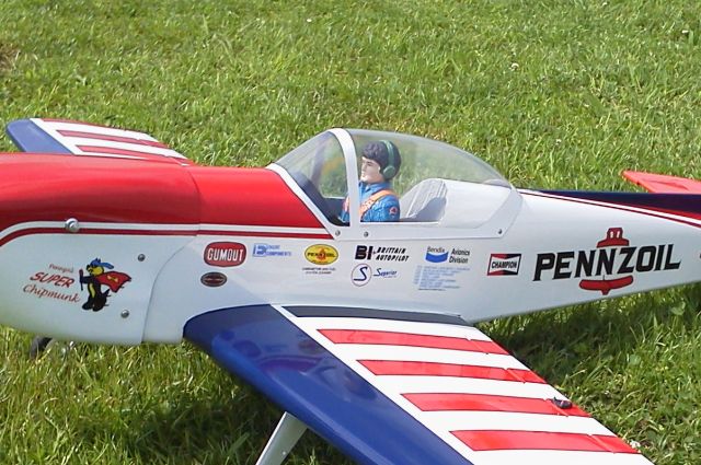 SUPER CHIPMUNK エンジン:saito56F 機体重量: 2400g メーカー:自作 翼幅:xxxxmm 全長:xxxxmm 2012年7月14日 初飛行 前作SUPER CHIPMUNK90を縮小し自作しました 白フィルムに赤、青の塗装後、クリア塗装をしています。 製作:早川 昇