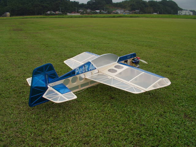 Petit Air エンジン:OS max25LA 機体重量 900g程度 メーカー:ホクセイモデル 完成機 製作:田村 分解持ち運び可、マイクロサーボ仕様