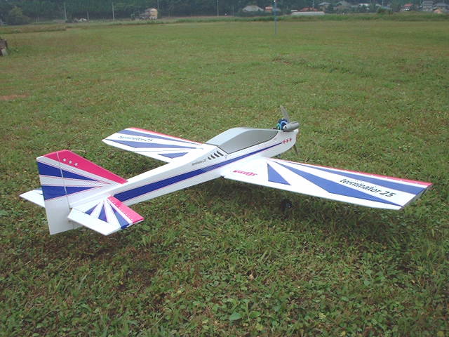 TERMINATOR25 エンジン:OS25LA 機体重量 1880g メーカー:OK模型 完成機 製作:室井 コメント:非常に重くテール・ヘビーな機体です。その分頑丈かな?