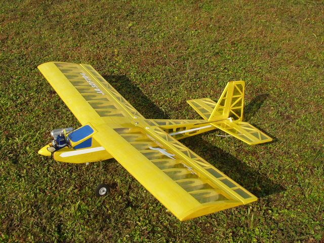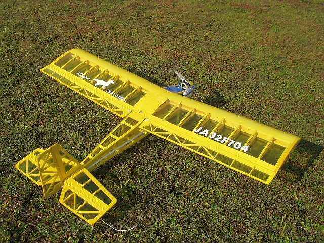 スカイ・カンガルー改 エンジン:os15LA 機体重量 950g程度 メーカー:ムサシノ模型飛行機 製作:辻野 動翼を大きくしてスタント仕様に改造しています