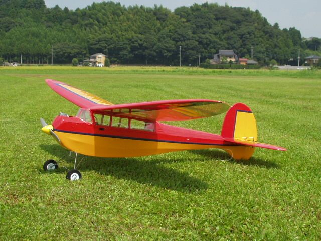 エンジン:os fs40 機体重量 1730g メーカー:BEN BUCKLE VINTAGE KITS 1982 全幅:66in 全長:48in のんびりフライトのオールドタイマー・ラダー機です トラス構造で軽量に仕上がっています、エンジンがちょっとオーバーパワーかな 2007年8月26日 初フライト成功