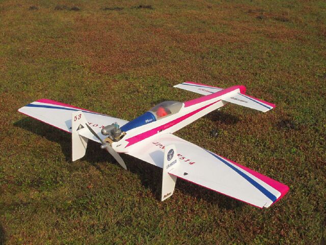 エンジン:OS MAX32FH(ヘッドを飛行機用に変更) 機体重量 2.2kg 自作 MONKEYという通常の機体のキットを利用して先尾翼機を自作しました。試作4号機でついに試験飛行成功しました 試作1号機と比べ胴体は短くなり、主翼の後退角が大きくなっています。重心位置は完成機を参考に大分、前になりました 製作:宮崎 勝治