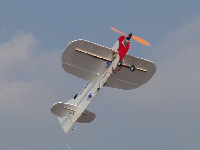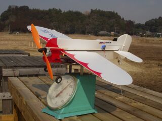 GEEBEE 電動ファンフライ 話題のリチウムポリマー電池を使用して軽量、インドアで楽しめます 製作:池田 機体重量はわずか300グラムです