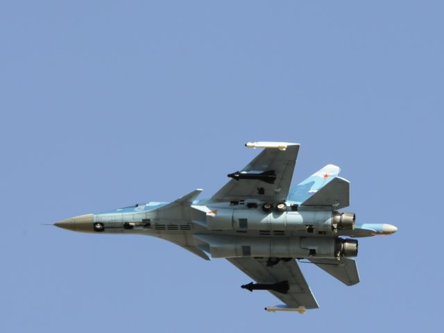 SU34 360°ベクターノズル付き 64mm 双発 3500kvブラシレスモーター・リポ4セル 3300mAh 機体重量:約1300g(機体のみ) 翼長 900mm 全長 1450mm 製作:古崎 2010年12月5日辻野氏撮影