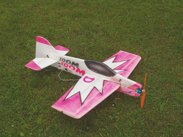 Zoom Zoom 4D hacker model製 翼幅880mm 全長920mm 重量 400g(含むバッテリー) ブラシレスモーター&ギアダウン ・ リポ3セル Motor : Himax HG-2015, ESC : Pheonix-25 25Amp, BAT : POLY-QUST 3c1p 1500mAh Serv : PICO-STD Wt-5.4g Trq-0.7kgcm,RCV : GWS-R6N, Prop : EP1147 製作:尾形