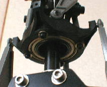 スワッシュプレートのベアリングは使っているうちに少し抜け出てきます、それを防ぐため4本のボルトにワッシャーを取り付けます。