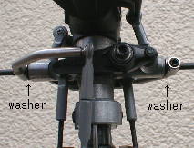 シーソとスタビライザーアームの間には必ず3mmワッシャーを入れます。メタルベアリングのカタ減りを防ぎ動きをスムースにします。