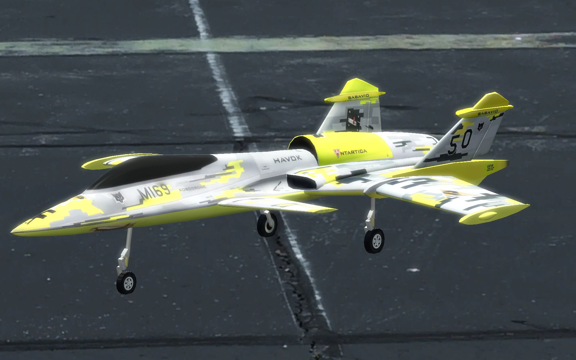 bohmerangさんが製作された3Dモデルをリアルフライト用にモデリングを修正しています。 ほぼ完成していますがAVを調整中です。TE FLAPはAUTO FLAPで飛行速度によって自動的に下がります。LE FLAPは6chで2段階に下がります。 エアーブレーキは8chで2段階に開きます。飛行速度は300Km/hを超えます。アフターバーナー作動時はエキゾーストの色が変化します。 航空灯及び着陸灯は点灯します。