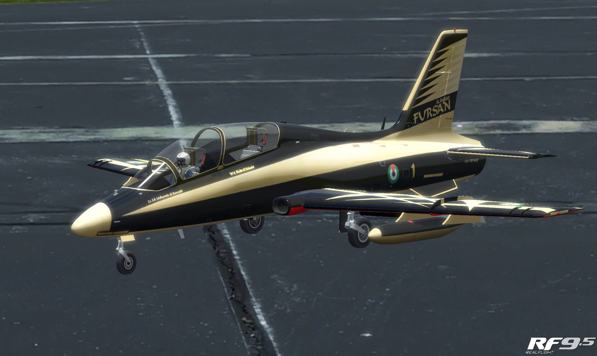 AERMACCI MB-339A 全長3m、翼幅2.8mの大型ジェット機です。 イタリア空軍アクロバット・チーム フレッチェ・トリコローリ(Frecce Tricolori)の機体塗装にしました。パイロットの服装も合わせました。 RF7.5でも動作するようにトライアングル数を削減しフライトコントローラーは設定していません。 AVはAndreaさんが作成しました。DR swでスモークのON/OFF,8chの3ポジションSWでair brake,sun viserの操作ができます。