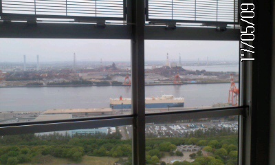 「千葉ポートタワーからの風景」 ポートタワーからの眺望で、JFEの製鉄所方面です。タワーの他、美術館、公園等もある。 千葉ポートタワーは、千葉県千葉市中央区に建つポートタワーで、 1983年9月に千葉県の人口が500万人を突破したことを記念して建設され、 千葉県民の日である1986年6月15日に開館しました。 一辺の長さ15.12mの菱形の断面形状をもち、展望フロアを除くタワー全面を 合計5,571枚の熱線反射ガラスで覆ったハーフミラーのタワーで、遠方より容易に確認出来る。 建物は地上4階、塔屋2階建て、高さ125.15m、施工は竹中工務店。 |