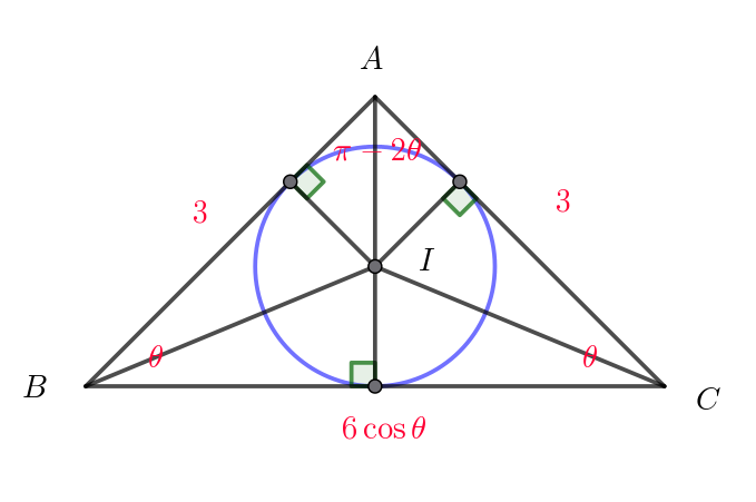 $(2)\ \ 三角形ABC\ の内接円の半径 \ \ r(\theta) \ \ を求めよ。$