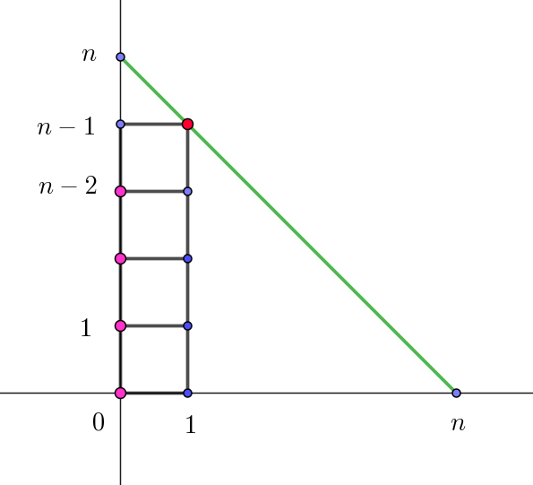 $1\ つの頂点が \ (1,\ n-1)\ にある長方形の個数は \quad (n-1)\ \ 個$