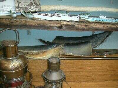 ↑↑↑ 資料:鯨 その科学と捕鯨の実際 大村秀雄・松浦義雄・宮崎一老 水産社版 鯨の資源 NAマッキントウシュ著 大村秀雄訳 鯨類研究所 ミンククジラのヒゲ ![]() ミンククジラのヒゲ板部分、板長さ23cm、全長30cm,幅11cm 触って見ると人の爪の感じです。皮膚が変化しました! ![]() ミンククジラの剛毛,長さ13cm。歯ブラシのヒゲといった感じです。 ![]() ミンククジラのヒゲ板(すかして見た部分)白い部分を光に透かして見ると筋が見えます これも爪の縦じまにソックリ!この筋がそれぞれ1本のヒゲです。 このヒゲでプランクトンをこし取り食べます。 セミクジラのヒゲ板 セミクジラ ![]() ヒゲ板(長さ143cm) 古くヒゲは切れて無くなりました。 セミクジラ ![]() ヒゲ板・ヒゲの拡大写真(幅10cm)、数ミリのプランクトンをこし取り食べます。 長崎お土産 ![]() 長崎駅前・長崎県物産館 古式捕鯨図 ![]() ヒゲ板に描かれています! 古式捕鯨図 ![]() ナガスヒゲ ![]() 長崎市浜町 ・・・・・・ オーシャンアイボリー