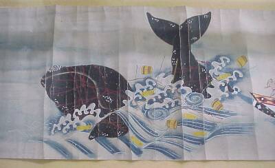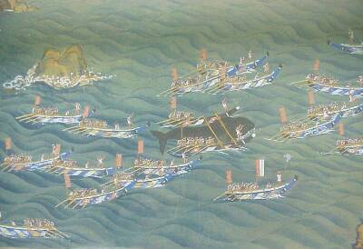 古式捕鯨図・網で囲み鯨の動きを止めて