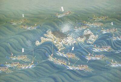 古式捕鯨絵図・勢子舟・鯨を追いかけて捕る舟