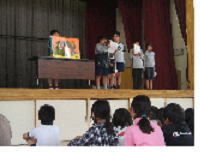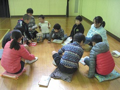 今年の読書集会はウクライナ民話『てぶくろ』を影絵にして紹介しました。 暗くした会場の中に浮かび上がる幻想的な影絵を見ながら聞くお話しはとても印象的でした。 影絵の動きと台詞の息もぴったり合いとても良かったです。 |