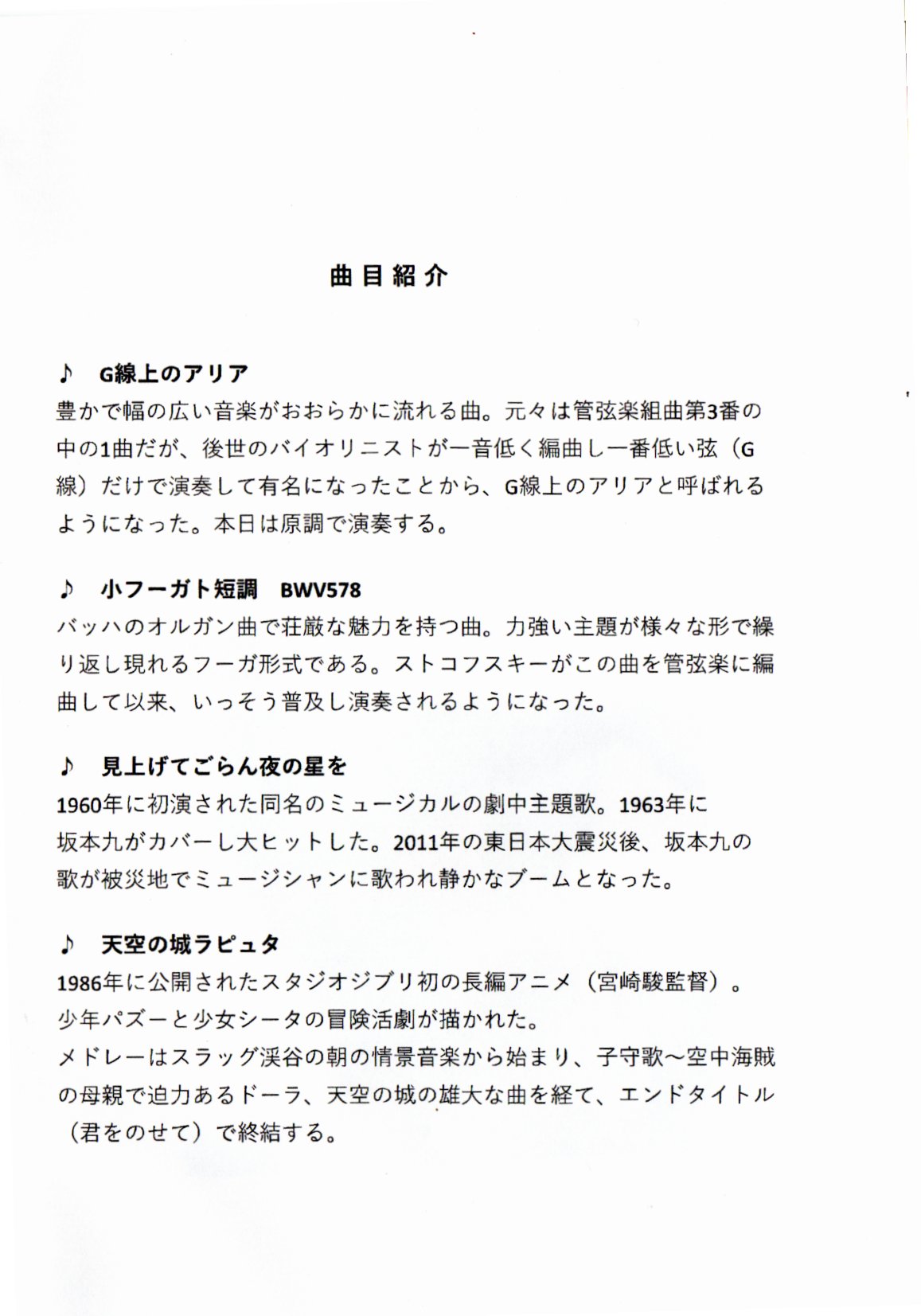 ・アンダンテ・カンタービレ ・新世界より〜ラルゴ ・童謡メドレー ・音楽物語 ペールギュント (花嫁の略奪とイングリッドの嘆き/山の魔王の宮殿にて/オーゼの死/朝 アラビアの踊り/アニトラの踊り/ペールギュントの帰郷/ソルヴェイグの歌)